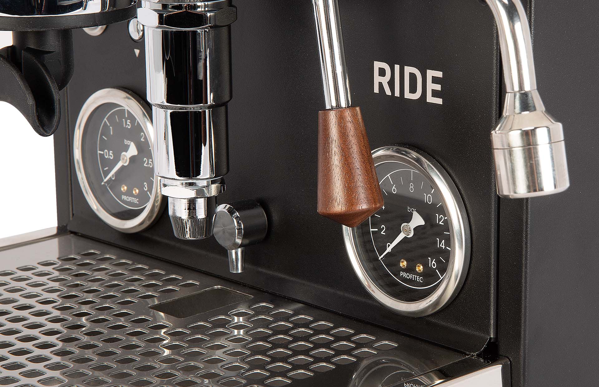 Die RIDE Exclusive Line mit mattschwarzem Gehäuse, schwarzen Manometern und handgefertigten Nussbaumgriffen, ist nur bei ausgewählten Fachhändlern erhältlich, die unsere Produkte ausschließlich regional vertreiben und eine optimale Einweisung in unsere Maschinen gewährleisten.